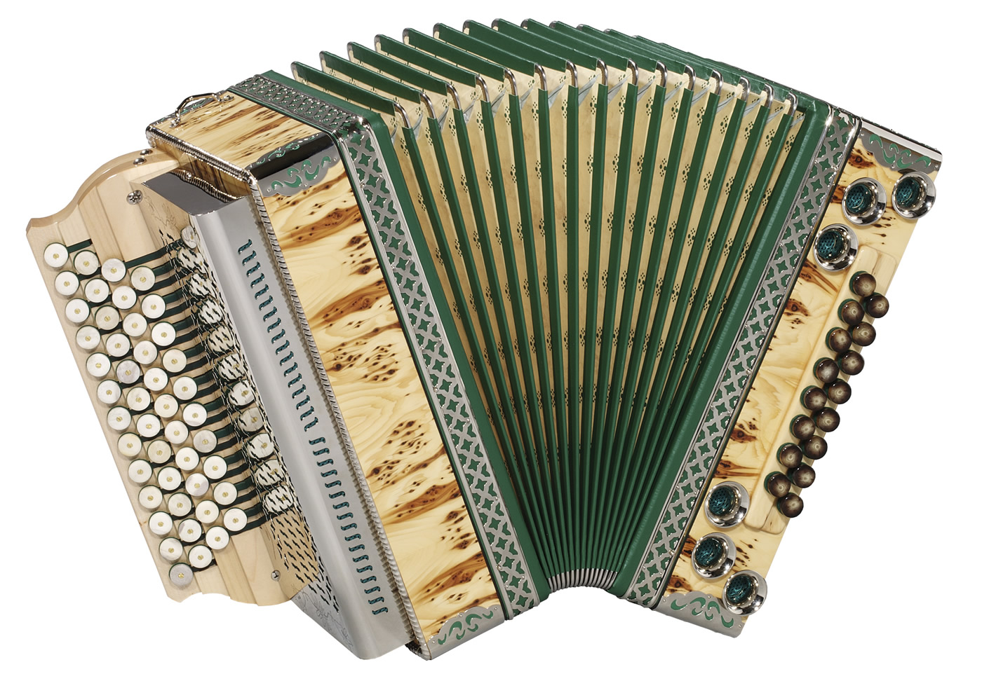 Sie können bei Luxus / Solist Modellen aus verschiedenen Holzarten, Balgfarben und Stoffen auswählen. Stimmung, Tastenbelegung und alle Balgfarben und Balg-Papiere und -Stoffe Tremolostufen sind im Grundpreis enthalten. Metallbeschläge in der Optik "hochglanzvernickelt", sowie Kunststoffknöpfe sind ohne Aufpreis erhältlich.