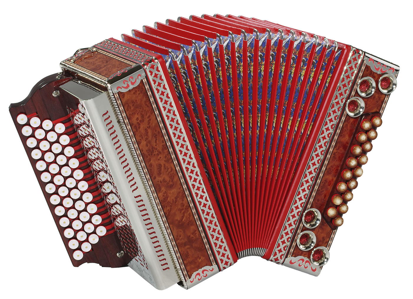 Sie können bei Luxus / Solist Modellen aus verschiedenen Holzarten, Balgfarben und Stoffen auswählen. Stimmung, Tastenbelegung und alle Balgfarben und Balg-Papiere und -Stoffe Tremolostufen sind im Grundpreis enthalten. Metallbeschläge in der Optik "hochglanzvernickelt", sowie Kunststoffknöpfe sind ohne Aufpreis erhältlich.