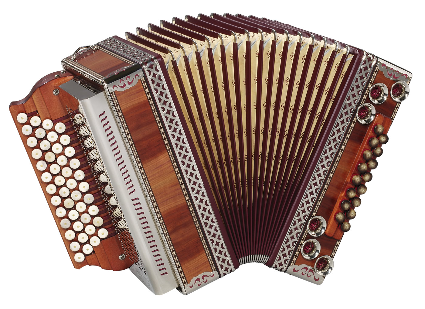 Sie können bei Luxus / Solist Modellen aus verschiedenen Holzarten, Balgfarben und Stoffen auswählen. Stimmung, Tastenbelegung und alle Balgfarben und Balg-Papiere und -Stoffe Tremolostufen sind im Grundpreis enthalten. Metallbeschläge in der Optik "hochglanzvernickelt", sowie Kunststoffknöpfe sind ohne Aufpreis erhältlich.
