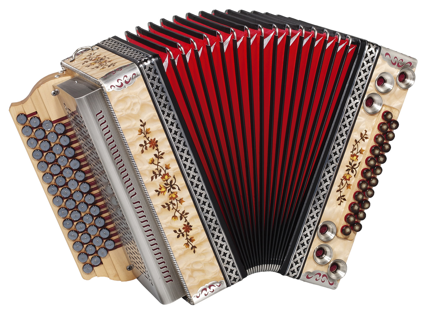 Sie können bei Luxus / Solist Modellen aus verschiedenen Holzarten, Balgfarben und Stoffen auswählen. Stimmung, Tastenbelegung und alle Balgfarben und Balg-Papiere und -Stoffe Tremolostufen sind im Grundpreis enthalten. Metallbeschläge in der Optik "hochglanzvernickelt", sowie Kunststoffknöpfe sind ohne Aufpreis erhältlich.