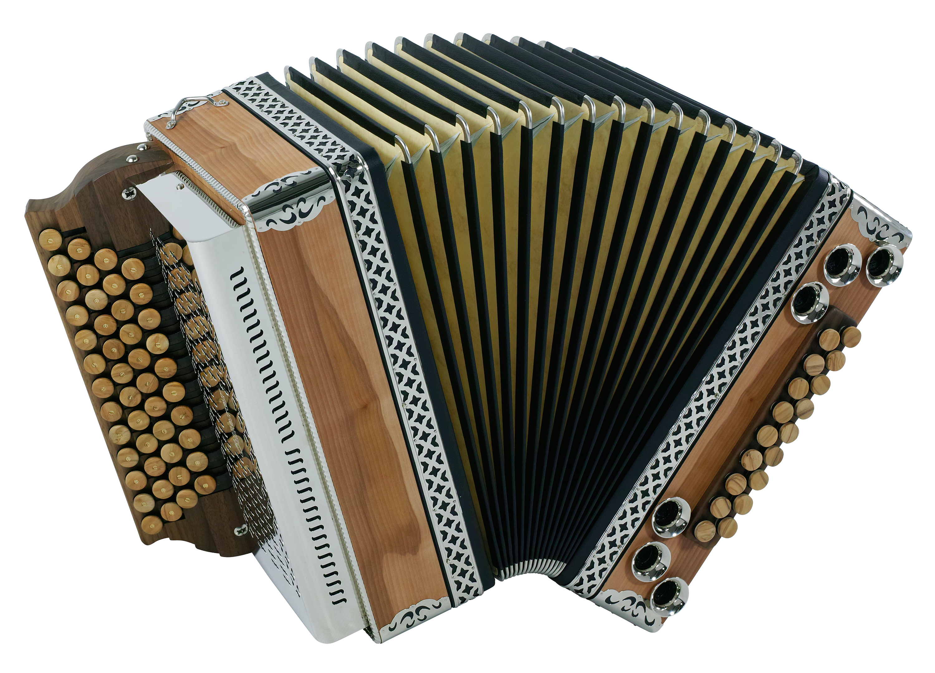 Sie können bei Luxus / Solist Modellen aus verschiedenen Holzarten, Balgfarben und Stoffen auswählen. Stimmung, Tastenbelegung und alle Balgfarben und Balg-Papiere und -Stoffe Tremolostufen sind im Grundpreis enthalten. Metallbeschläge in der Optik "hochglanzvernickelt", sowie Kunststoffknöpfe sind ohne Aufpreis erhältlich.